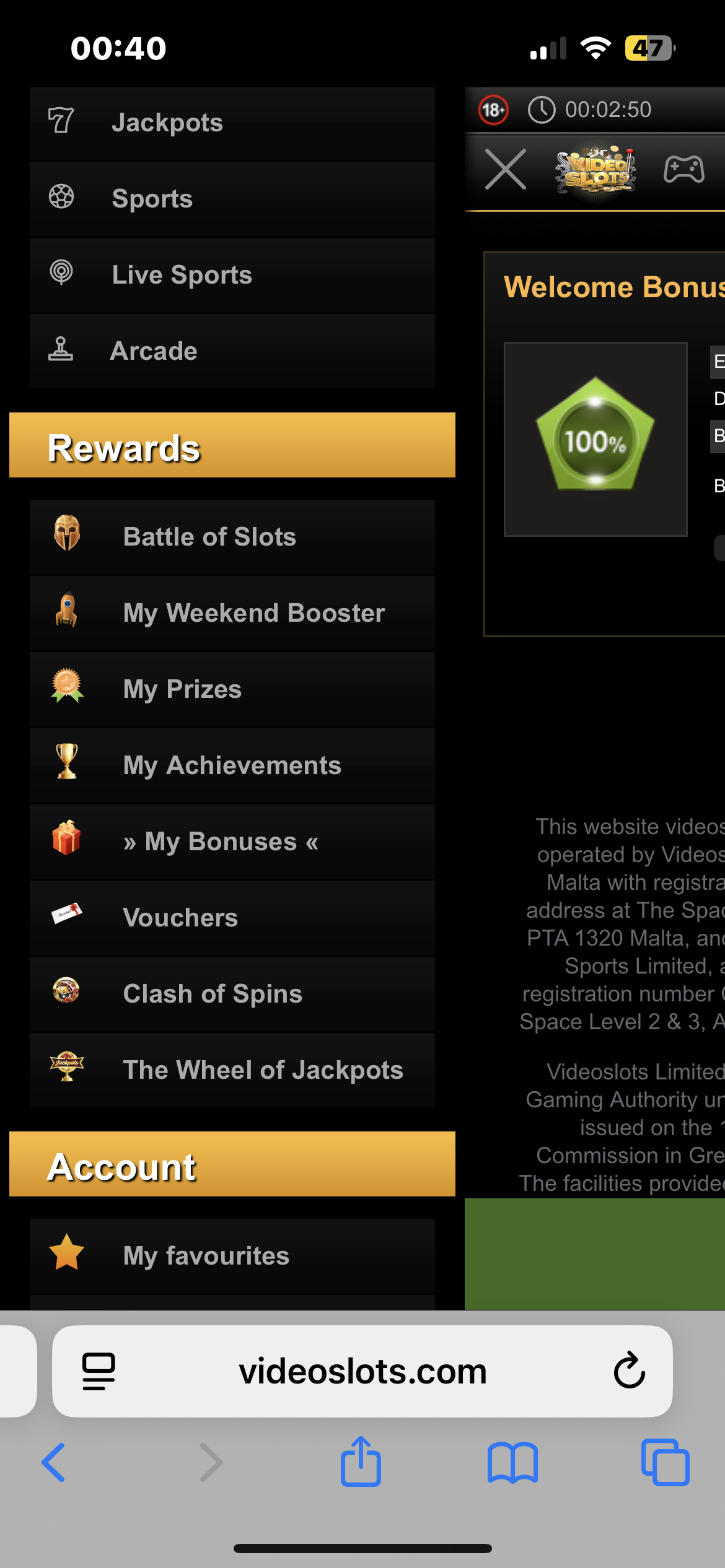 Open the main menu utilising the button in the top left corner. Once open, navigate down the menu and locate the "My Bonuses" section, underneath the "Rewards" heading.